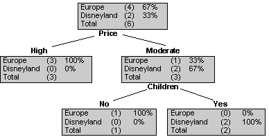 IF Price is High OR (Price is Moderate AND Children = No) THEN Destination = Europe IF Price is Moderate AND Children = Yes THEN Destination = Disneyland |