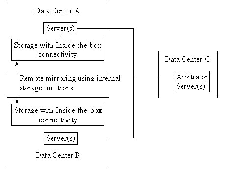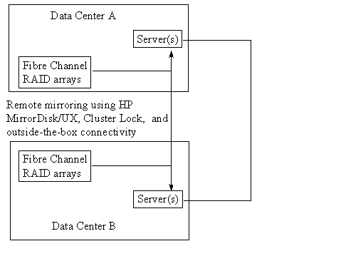 The outside-the-box solution is even more attractive when making the entire cluster disaster tolerant. HP calls this "Wide Availability." Disaster tolerant clusters in HP/UX require two data centers if sever-software is used for replication. Server-software is typically used for replication with outside-the-box connectivity. In contrast, using "inside-the-box" connectivity to replicate data instead of allowing the server to do it requires three data centers to achieve a disaster-tolerant cluster. Thus the outside-the-box solution is less costly to implement and maintain.