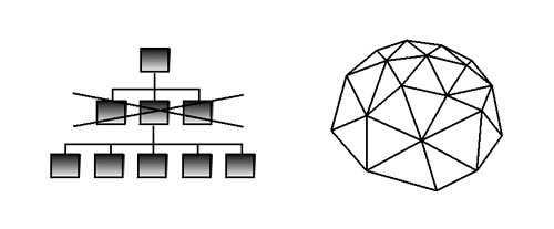 Trucks can go where they want, when they want. They can operate at will within the general architecture of the highway system. The control is literally ‘in the driver’s seat.’ All that drivers need are some instructions (messages as to where to make a delivery) and some rules to follow (the rules-of-the-road.)