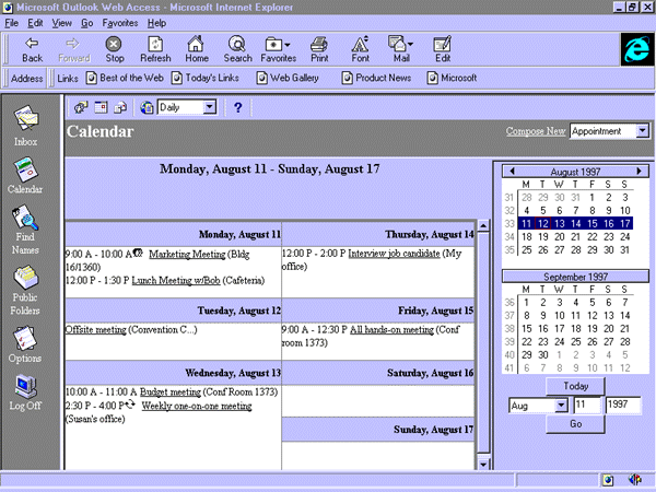 Figure 3: Outlook Web Access for calendaring and scheduling