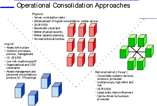 Customers with significant server investments are becoming increasingly aware that IT Operations Consolidation can translate into large cost reductions. A well-designed consolidation framework allows IT to use its data centers and IT business processes to evolve into a provider of a Compute Utility, which can offer value to business units and end-user customers. The data centers are the right place for this to occur because they can provide lower costs and better services through economies of scale as well as the critical mass for capacity planning, security, and architecture compliance.