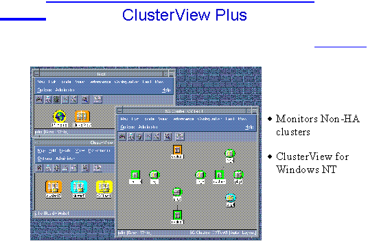 Another key aspect of Consolidation is a simplified multi-system management framework. EPS provides this with ClusterView Plus, an enhancement of ClusterView. ClusterView Plus is an extension to IT/O, which allows an administrator to create Management Clusters, a new form of cluster definition (in addition to ServiceGuard Clusters for High Availability and LockManager Clusters for Oracle Parallel Server). A Management Cluster is simply a user-defined grouping of nodes that are logically related in some way. For example, a Management Cluster may be defined to correspond to all nodes in a data center that are running SAP, or another might correspond to all nodes in use by a given department, or another might correspond to all nodes managed by a given administrative team. A node may belong to more than one Management Cluster or to a Management Cluster and another type of cluster such as a ServiceGuard Cluster.
