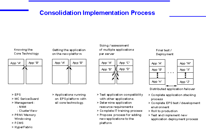Now that we have introduced the five focus areas of Consolidation and presented the features of HP’s EPS Architecture, we illustrate how each of the focus areas of Consolidation can be achieved on EPS. We discuss each in turn.