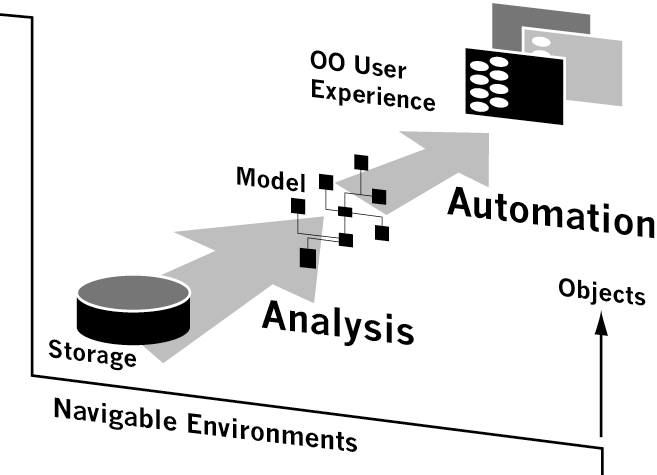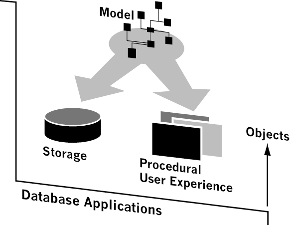 The client tiers of today have not changed much since the early days of computing, and prevailing end-user experiences still follow a very procedural manifestation of any object concepts. Applications today still employ a menu-driven approach. Menu selections lead to interaction forms, which provide data access and management capabilities ("CRUD" model). This model creates a user-experience where screens are disconnected from one another and few if any predetermined wires exist between those forms. Manual or semi-automatic methods for creating forms, which are bound to underlying objects, still require users to understand rigid structures forced on them by application designers. In most cases, the benefits of object-orientation don’t surface to the end user, no matter how well designed or implemented the software may be.