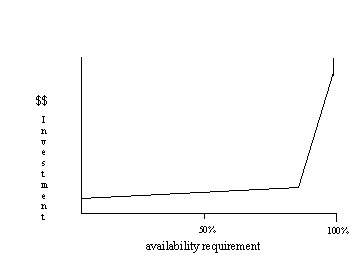 When your availability requirement reaches the 95% area, process, documentation, and discipline are often the difference between success and failure. Once you reach the area of 99.5% and greater, technology becomes even less a contributing factor. The investment axis not only represents technology but should also include effort, people, and time.