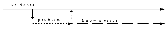 If an incident meets one of the above qualifications, it becomes a problem. This event begins the Problem Management process. Additionally, once the actual cause of the incident becomes known, a problem is then classified as a "known error". Let's take a graphical look at the flow from an incident to a known error.