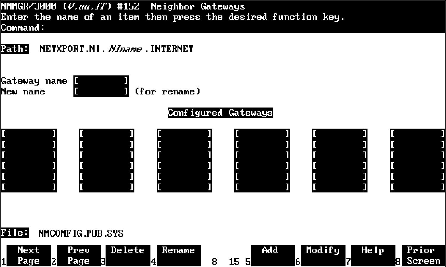 Neighbor Gateways [ NS3000/iX NMMGR Screens Reference Manual ] MPE/iX 5.0 Documentation