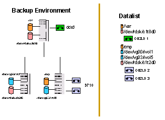 OmniBack II uses the notion of a "datalist" to configure and execute repeatable backup jobs. A datalist is a configuration file, which contains descriptions of backup objects, which need to be backed up and target backup devices, which should be used for backup. Target backup devices (i.e. tape drives) are called OmniBack II logical devices in OmniBack II terminology (further: OB2LD) not to be confused with Symmetrix logical devices (SLDs) already introduced.
