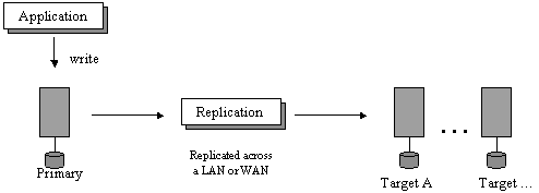 The term "replication" generally refers to a tool or some combination of tools that is used to automate the process of regularly placing an up to date copy of data from a designated source or primary location to one or more other locations. Typically, the data state on the primary is changing relatively frequently as it reflects user updates. If the data state on the primary did not change very frequently or did not change at all, then it may be acceptable to perform a more labor intensive manual replication process only when needed. When replication needs to be performed on a regular basis, an automated replication tool can reduce the potential for operator error and obtain the most leverage from existing administrative resources.