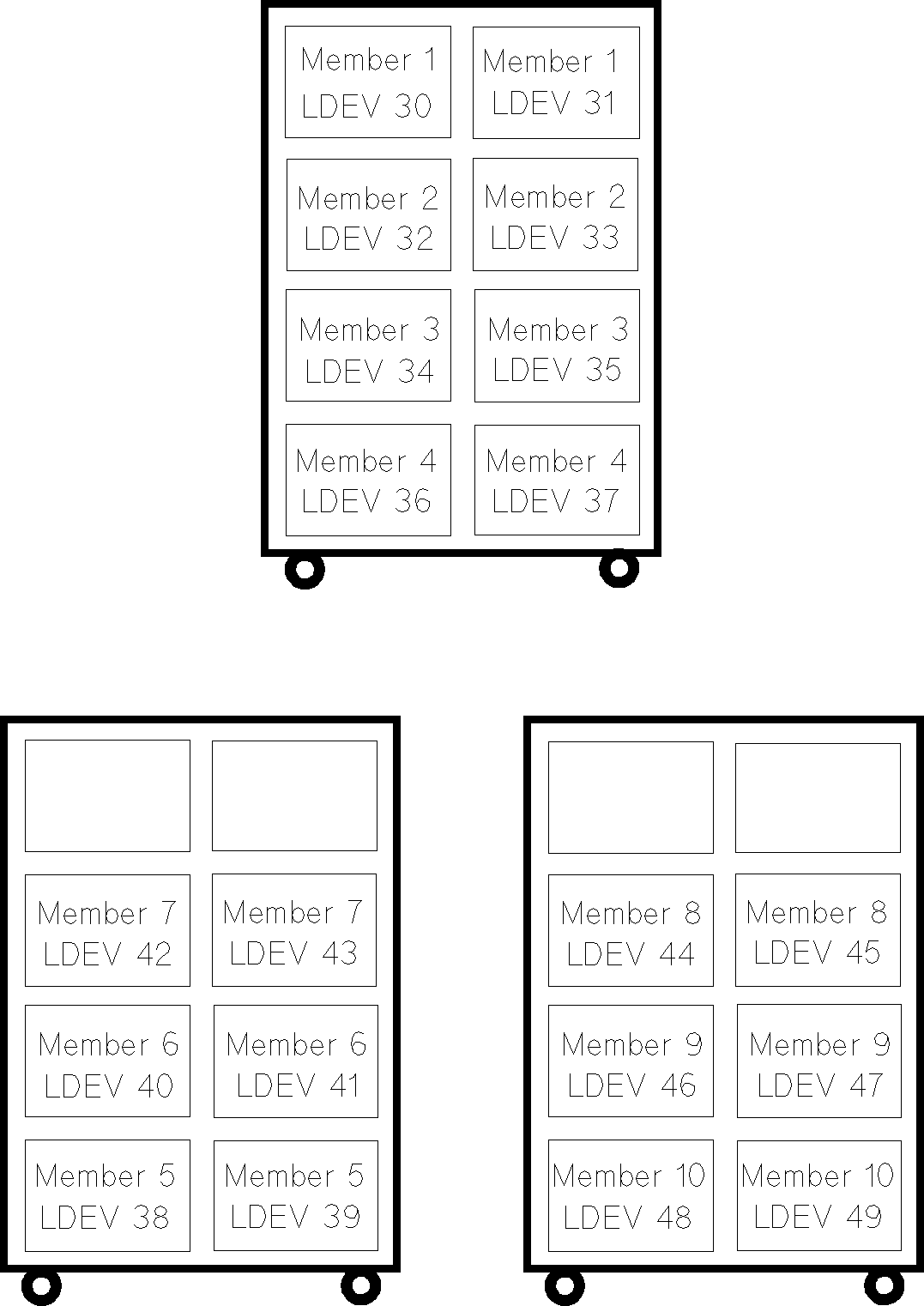 LDEVs 30, 31, 32, and 33 are the disks directly connected to HP-FL cards