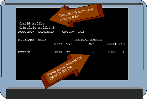 On the HP 3000, data is typically stored in files, just as it is on virtually any other computer system. In the simplest sense of the term, a file is a reserved area on a device used to store data. The HP 3000 allows you to create files on a number of different kinds of devices, but disk devices are the ones used most frequently, so that's where we're going to focus in this article. Files are a part of the HP 3000's file system. The file system was introduced at the beginning of this series of articles. In parts one through three of this series, we explained the framework of accounts, groups, and directories in which files reside, as well as MPE/iX's rules for naming files. Now we're going to turn our attention to the contents of files. We'll see exactly how files are created, how they are purged, and how data is written to files. We'll also learn how data in files can be accessed on the HP 3000.Creating a File: A BUILD Command