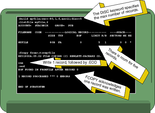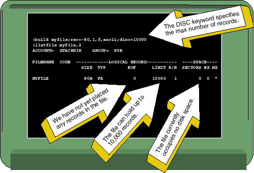The :BUILD command shown in the figure creates a file named MYFILE.