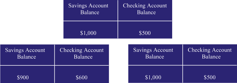 withdraw $100 from checking. When both transactions are complete,