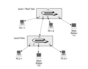 packet on the network. Hubs connected as nodes also complete a round-robin